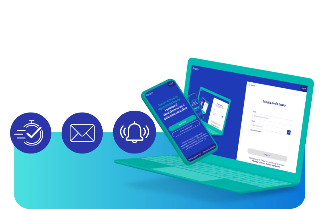 Ze względów na bezpieczeństwo Twoich danych tylko jedna osoba może zalogować się do systemu Emmy pod jednym numerem telefonu i jednym adresem e-mail. Dlatego każdy z was musi zostać zarejestrowany za pośrednictwem innego konta e-mail.