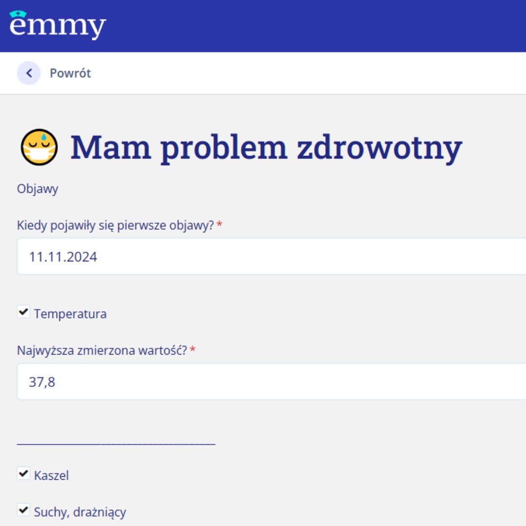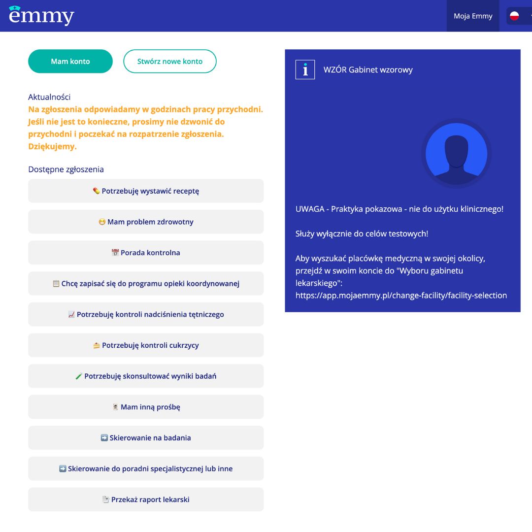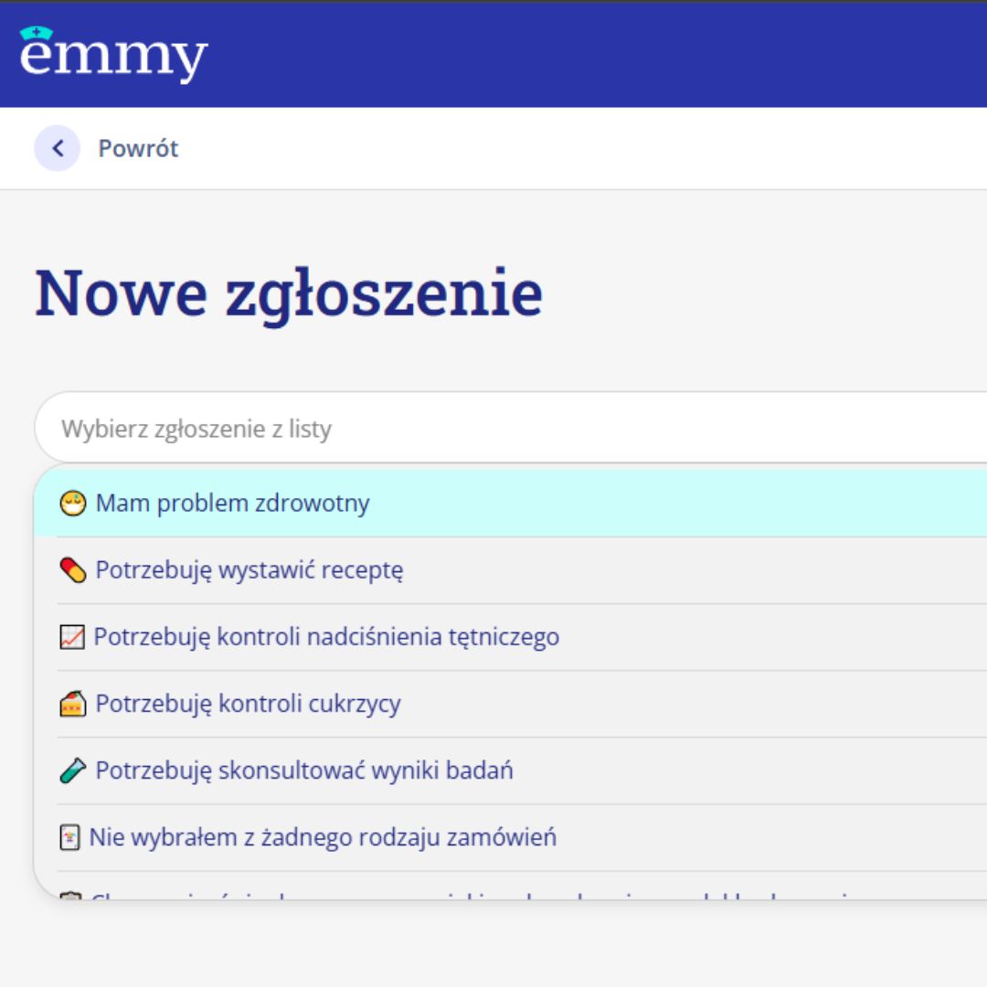 Pacjent loguje się do Emmy i wybiera, co chce z Tobą w gabinecie rozwiązać.