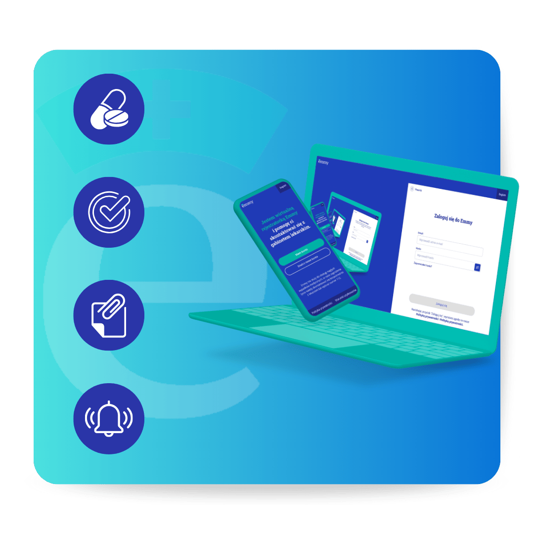 Łukasz loguje się do portalu internetowego Emmy na swoim komputerze lub telefonie komórkowym.